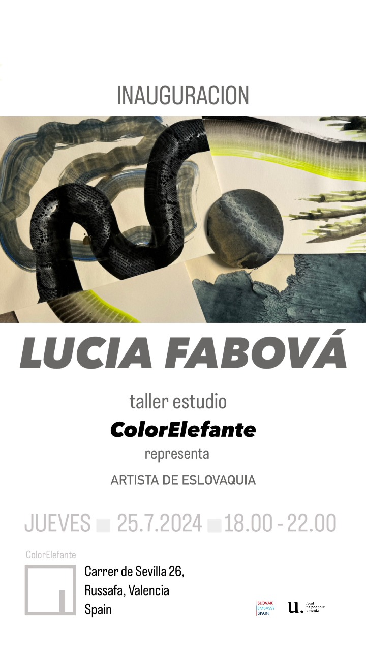 25/07/2025 18:00Slovak visual artist and painter Lucia Fabová is opening her temporary art studio in Spain, in studios of ColorElefante Gallery in Valencia. The artist will present her artwork, gestural paintigs and sketches, which she created during her artistic stay in Spain.Taller abierto - Open studio opens on 25.7.2024 between 18.00 - 22.00, where the author guide visitors trought the exhibition.